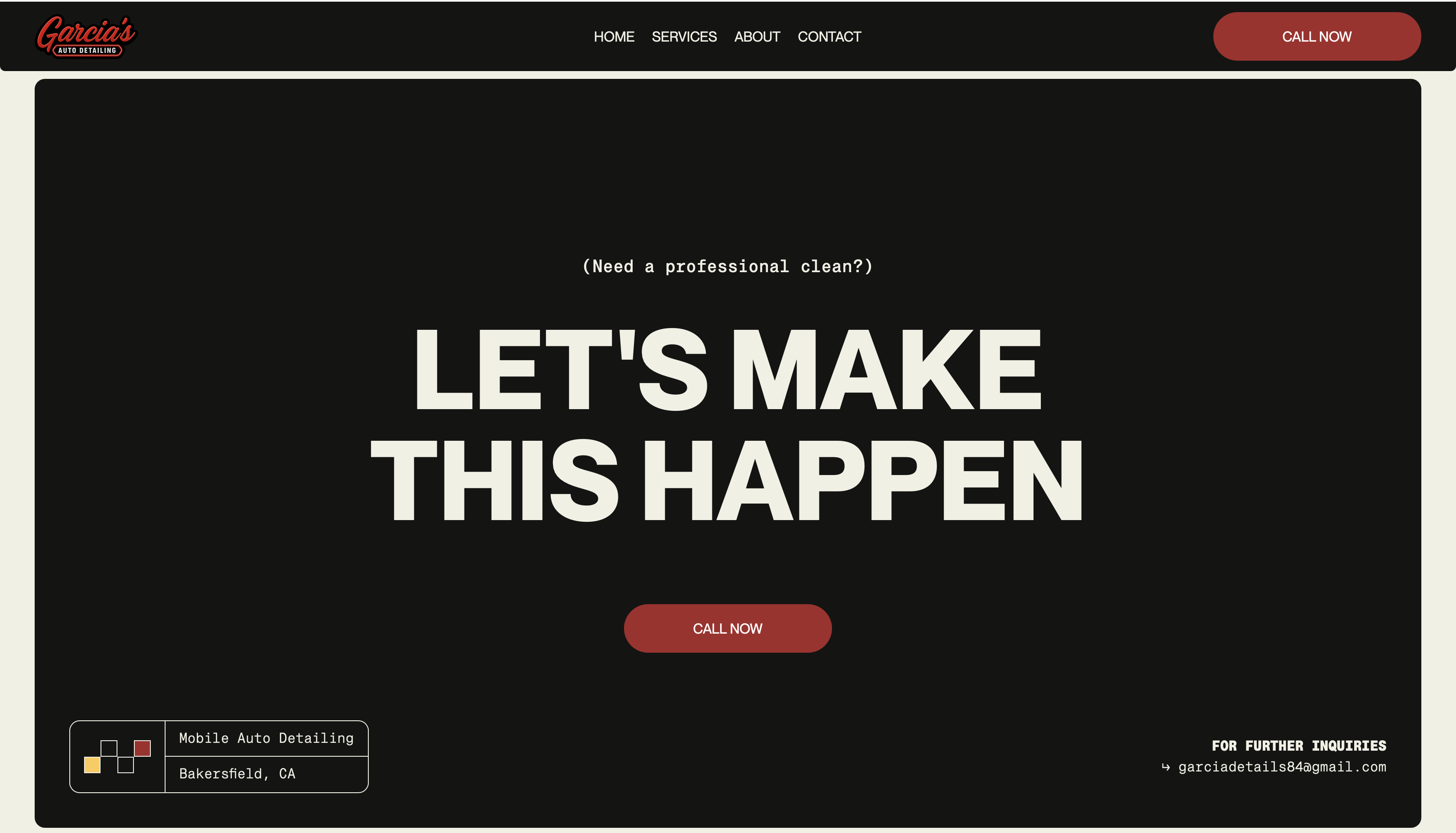 Garcia Auto Detailing is a modern, high-performance website rebuilt from the ground up using React, TypeScript, and Vite. The project migrated the business from Squarespace to a custom architecture, enabling faster load times, reusable UI components, and full design flexibility. Styled with Tailwind CSS and deployed on Vercel with a custom Porkbun domain, the site delivers a smooth, responsive experience across devices and reflects the client's brand identity through a refined, performance-focused design.